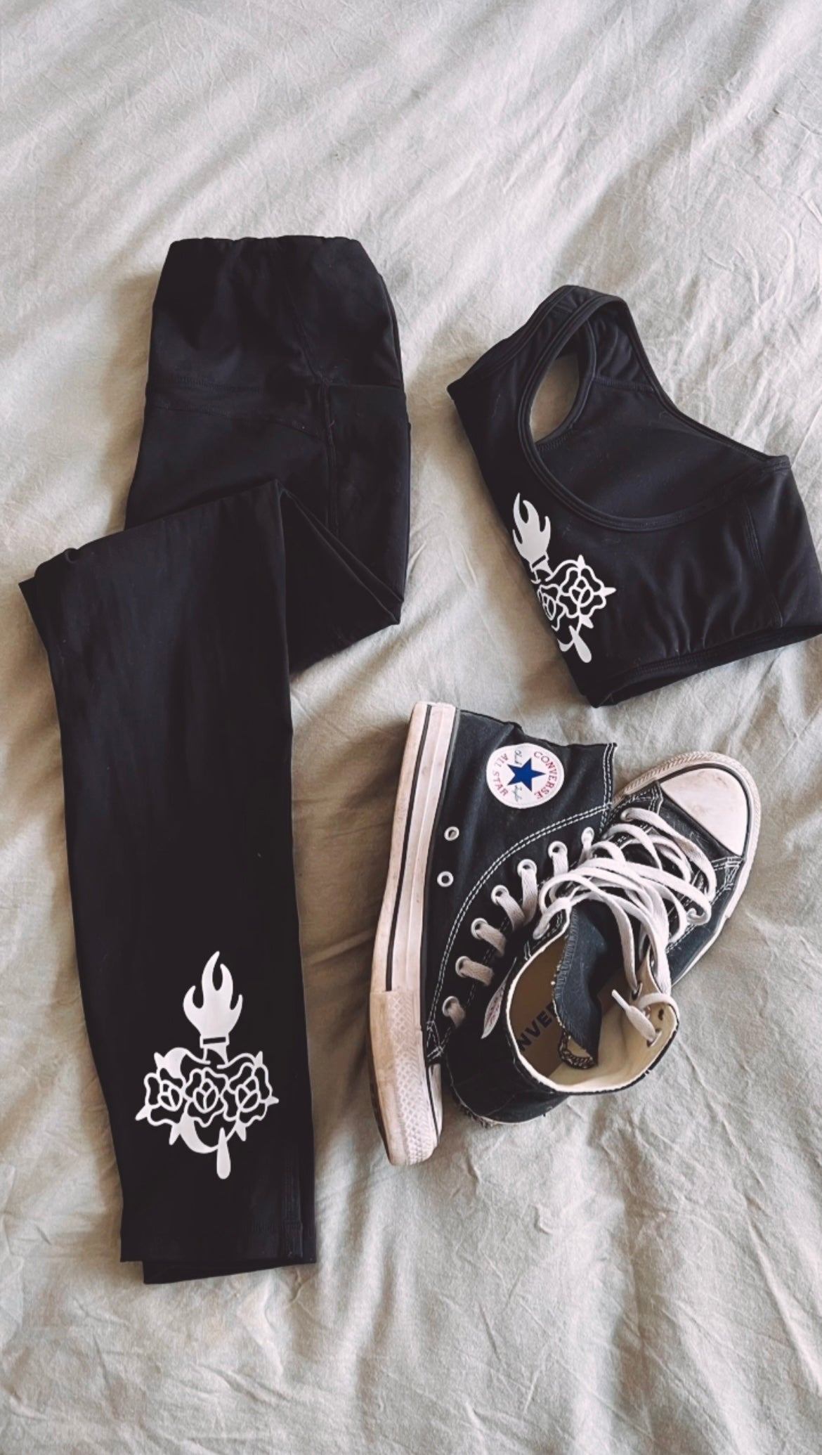 Wether your a die hard gym bunny or like to wear active wear whilst tackling the life of motherhood at home (and we all know thats an extreme sport in itself!) our super soft leggings not only look awesome but will keep you comfy and ready to take on the day, all day. No sagging, no see through ass, no top roll down every time you bend over, just cool, calm and comfy. Super soft matte finish, full length, high waist, and not one but two side pockets! Kept plain in the front with our sacred heart logo on the right lower calf.
