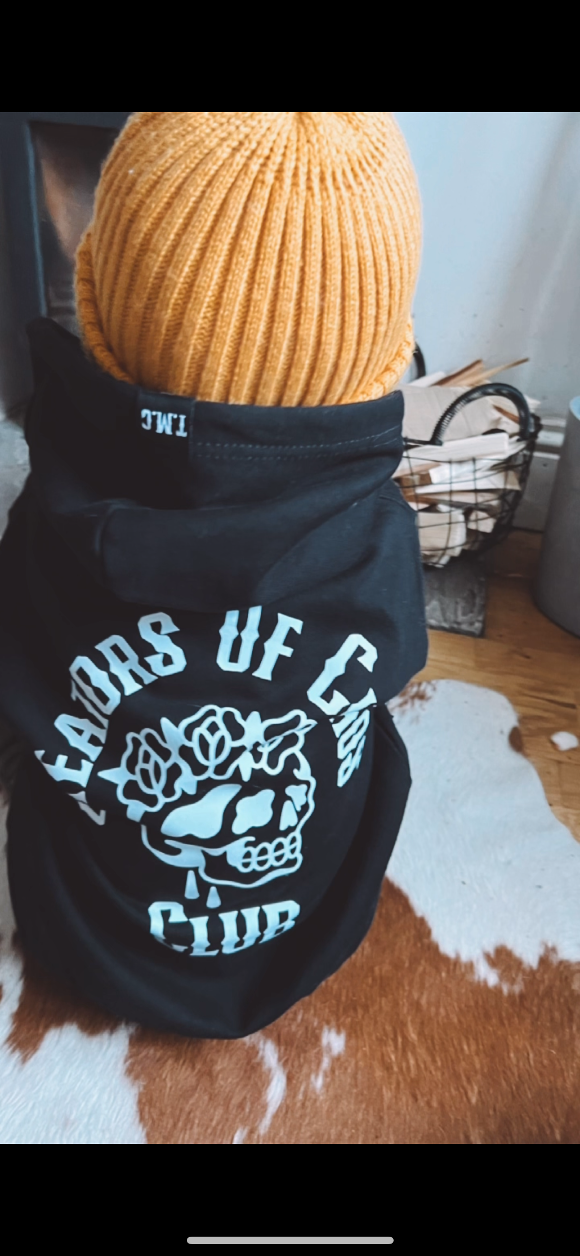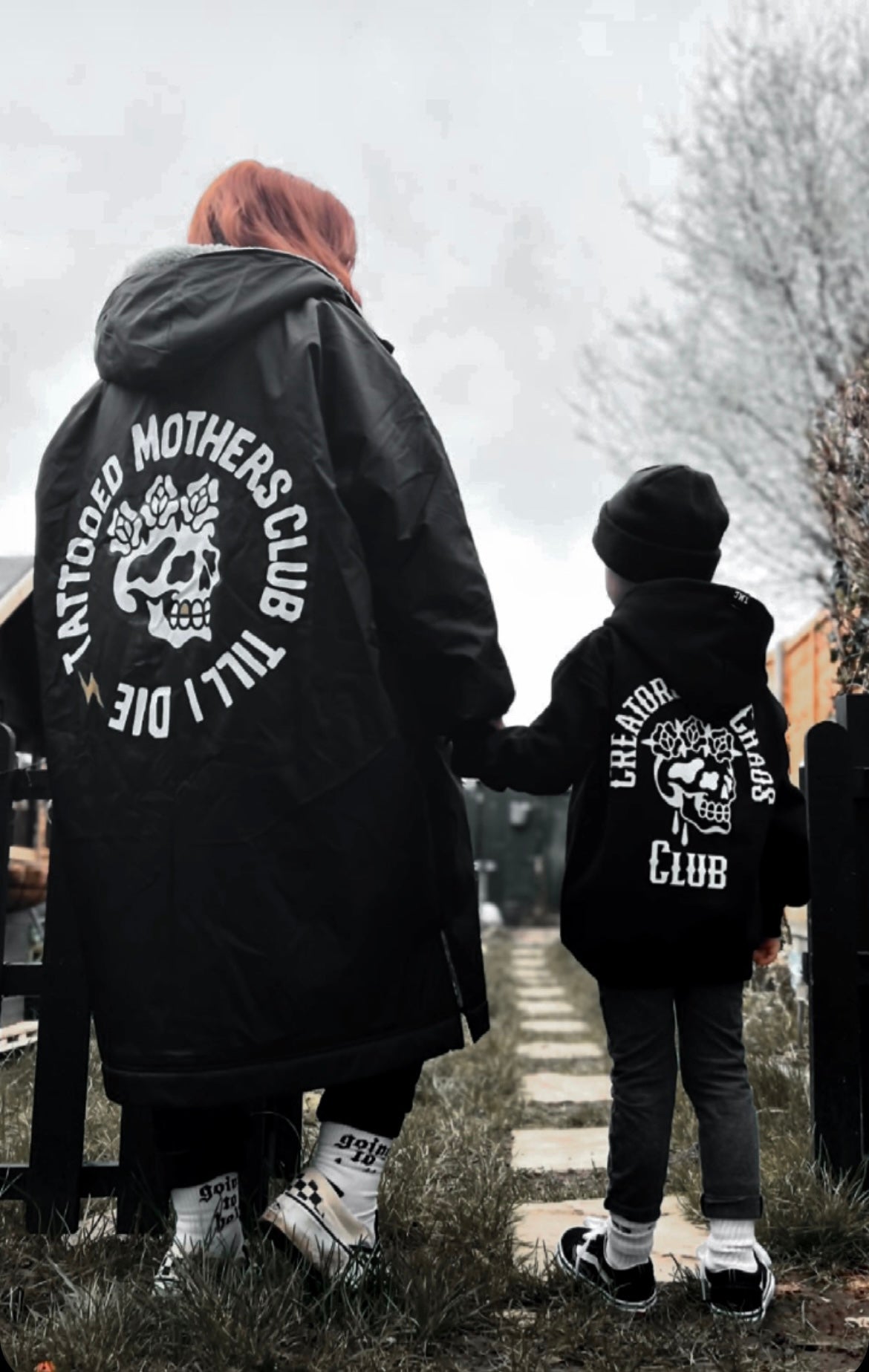 a super soft and comfy black hoodie with our Creators Of Chaos logo on the back and a white lightning bolt on the front. A large kangaroo pouch pocket on the front perfect for stashing lego, cereal, toy cars and more!