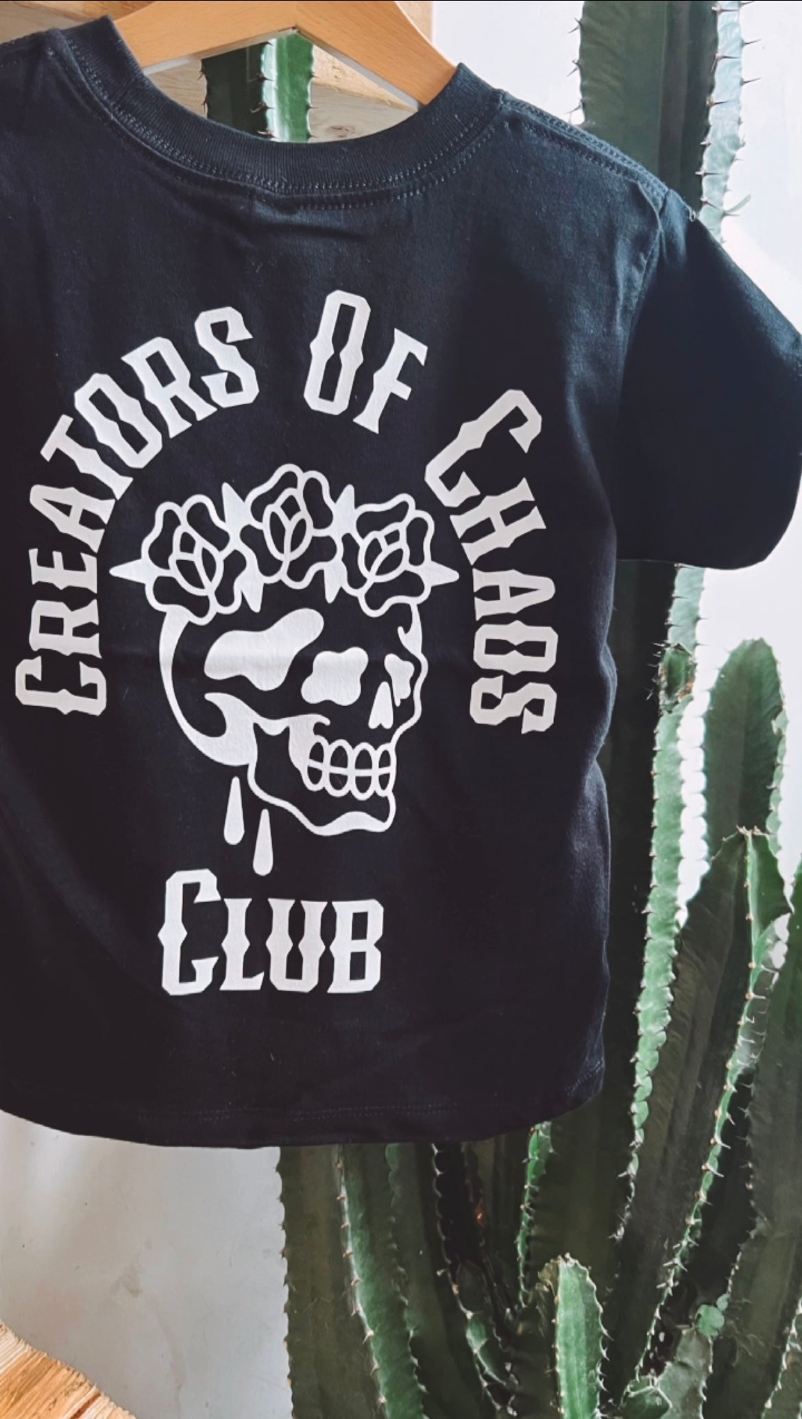 a super soft and comfy black tee with our Creators Of Chaos logo on the back and a white lightning bolt on the front. A high quality, organic cotton tee built to last wash after wash.