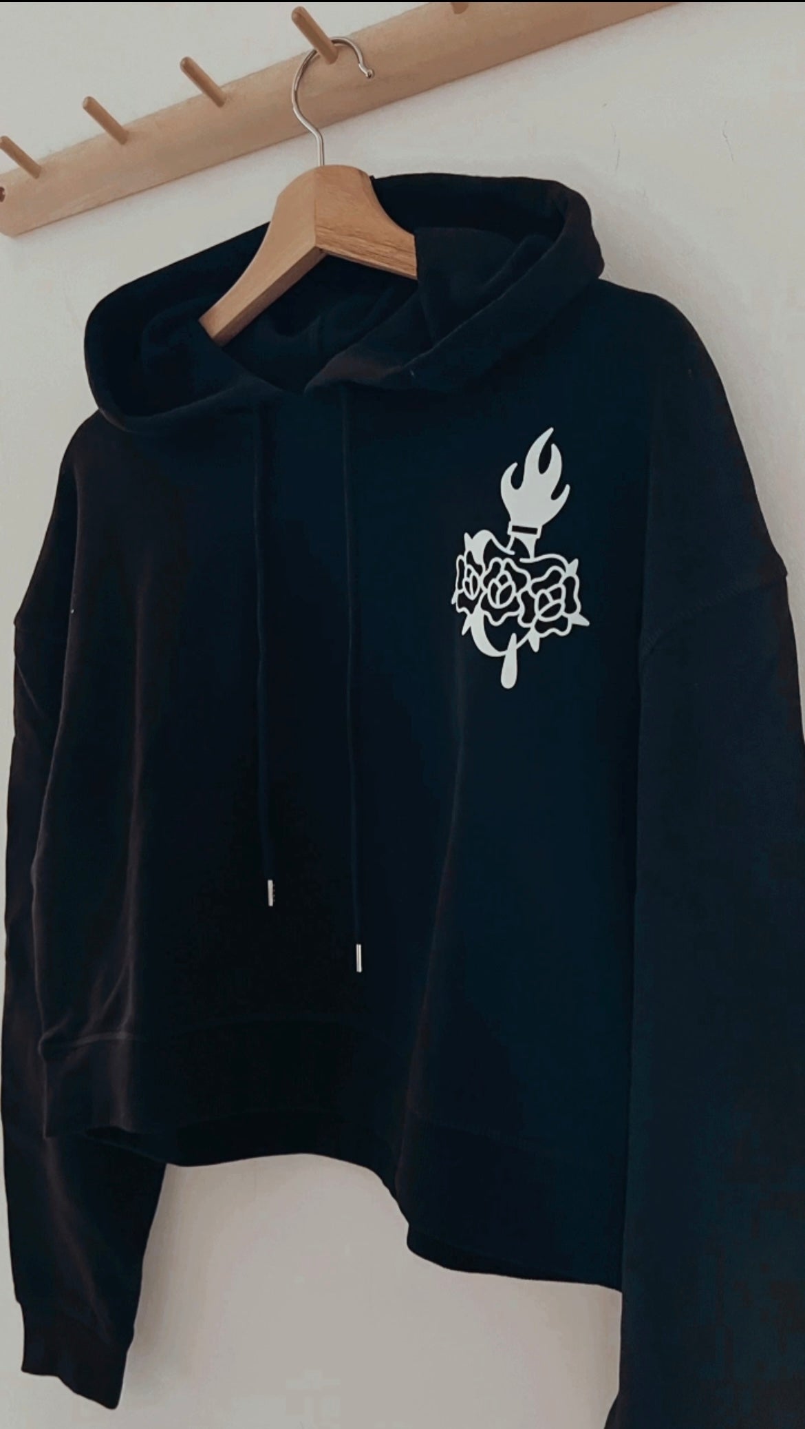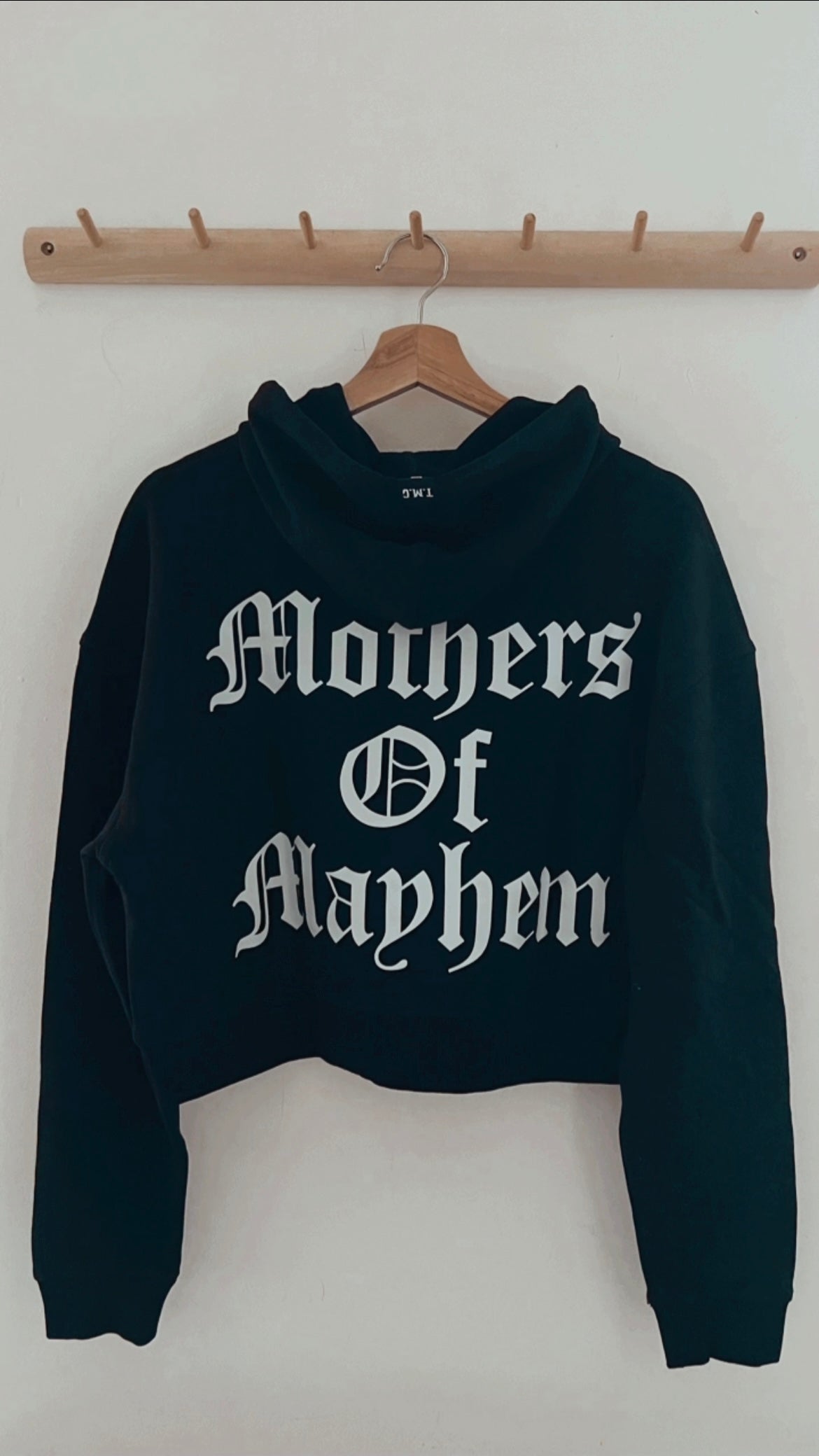 Our First Hoodie as part of the Mothers Of Mayhem Collection, a relaxed fit, heavy weight cropped hoodie in black.